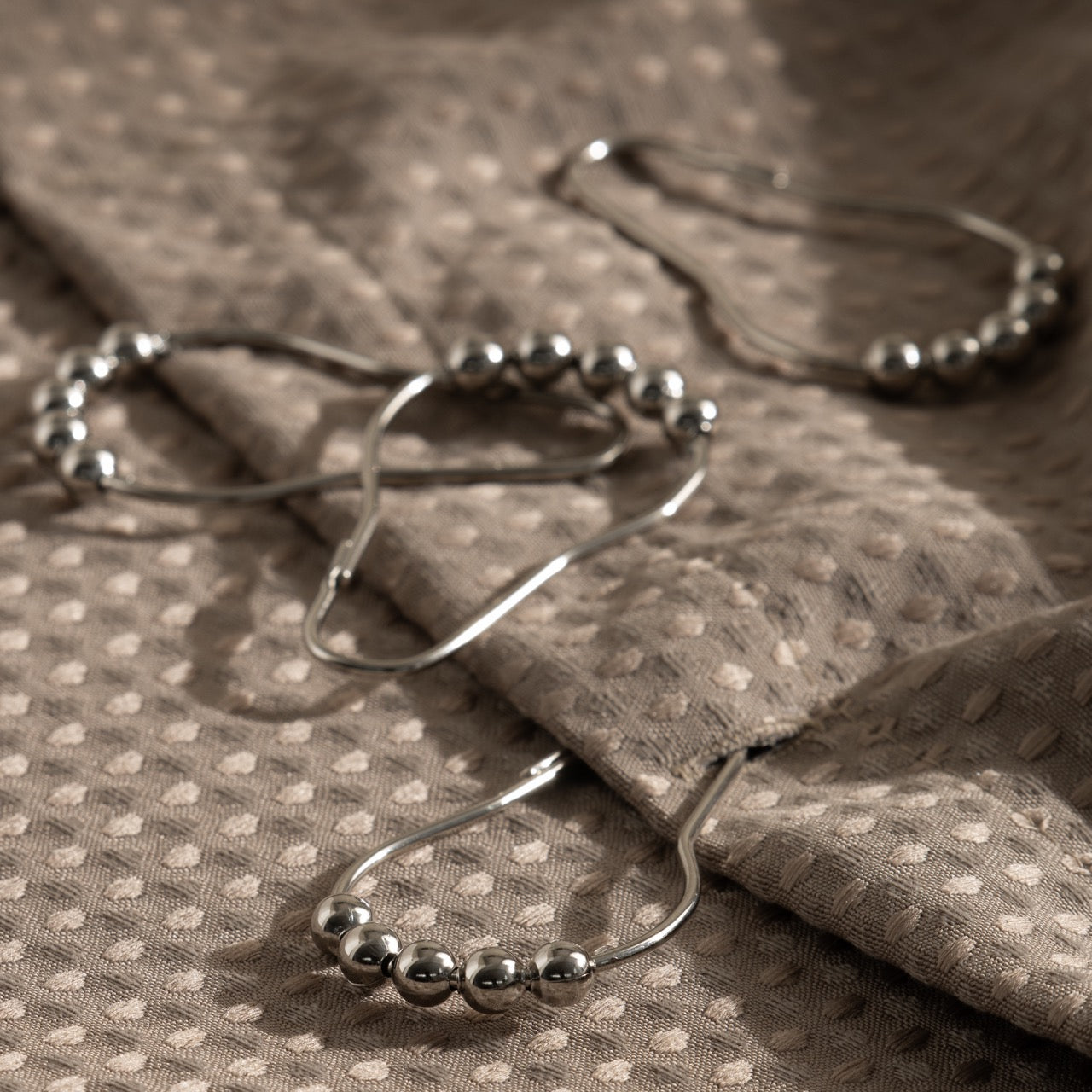 Per appendere il tuo tendaggio da doccia, avrai bisogno di 12 ganci per fissarlo in modo sicuro. Per ottenere i migliori risultati, ti consigliamo di stirare il tendaggio dopo averlo ricevuto per rimuovere eventuali piegh