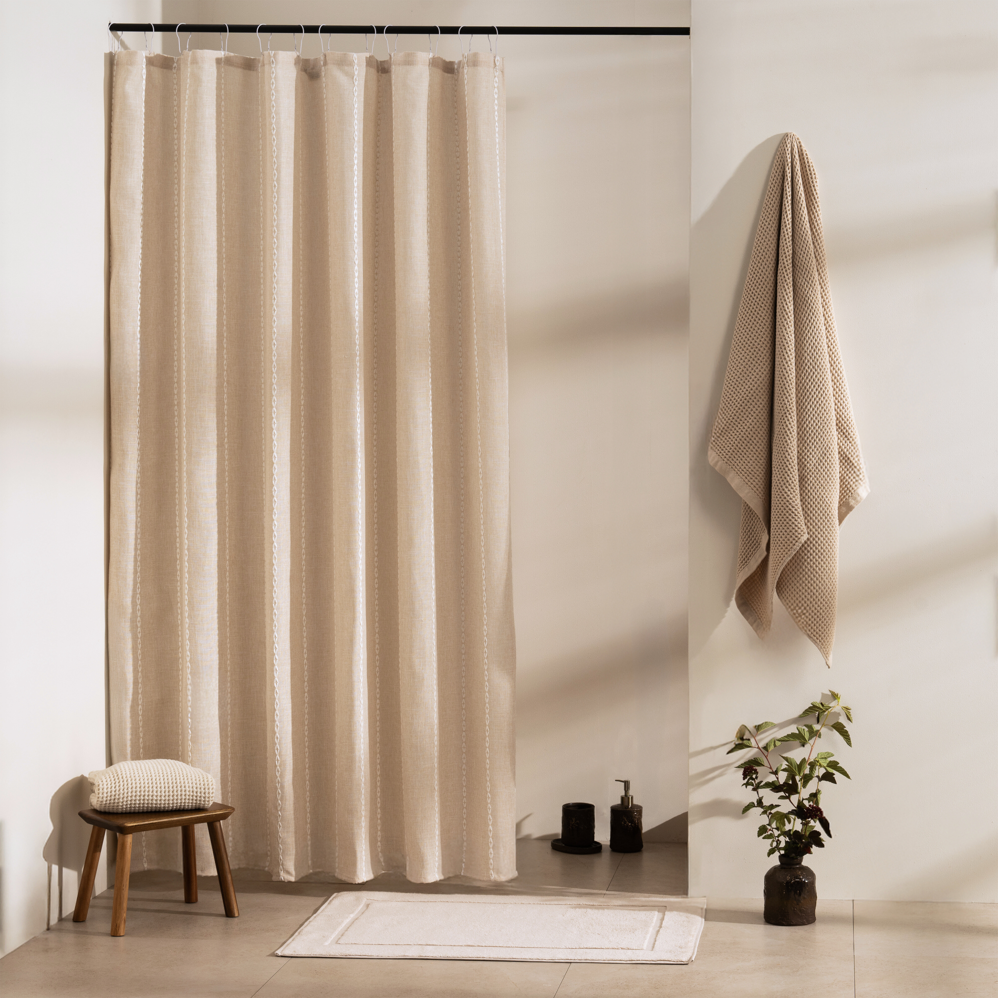 The specially designed bottom edge of the curtain is expertly crafted to maintain its shape and ensure an even and elegant draping, giving your shower a touch of refinement.