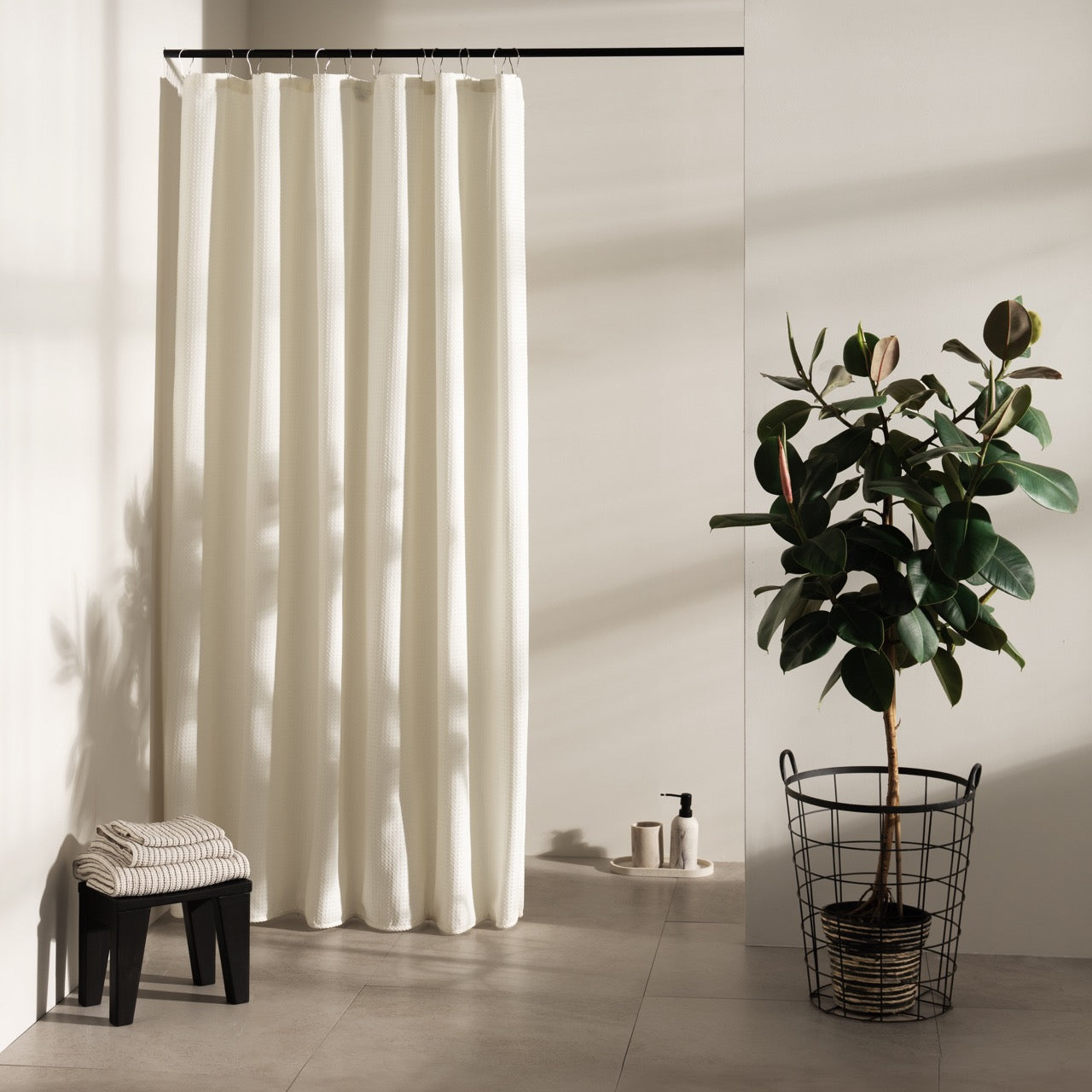 Shower curtain rings are not included but can be purchased separately to complete your experience.