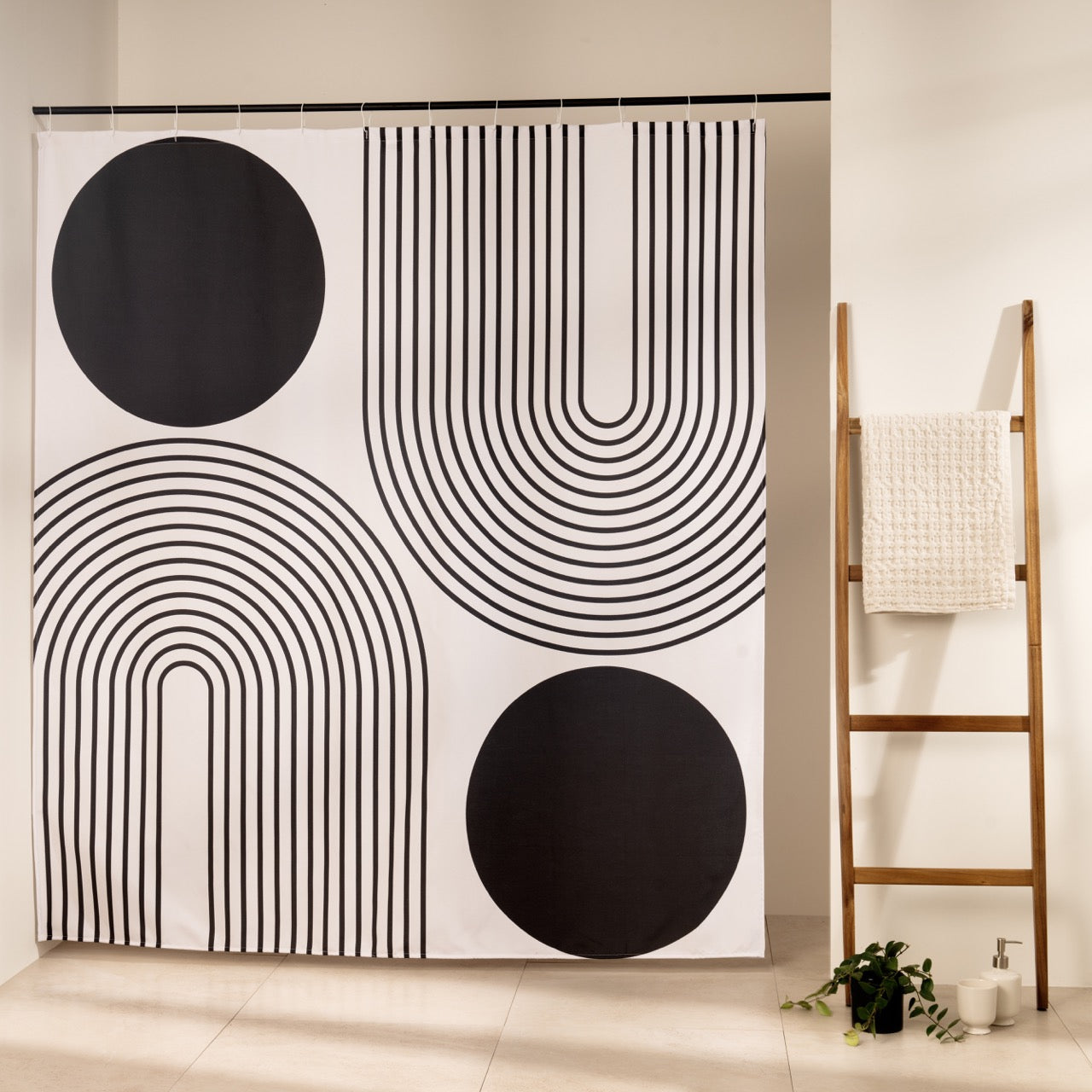 Om je douchegordijn op te hangen, heb je 12 haken nodig om het stevig vast te maken. Voor het beste resultaat raden we aan het gordijn na ontvangst te strijken om kreukels te verwijderen.